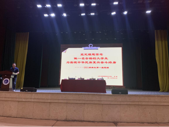 9月14日上午,www.国产精品党总支书记赵渊以“坚定理想信念,做一名合格的大学生,为实现中华民族复兴奋斗终身”为主题,紧密结合党史学习教育为全院460余新生、部分教师代表上专题党课。