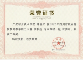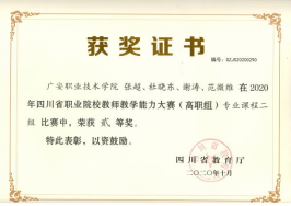 学院专任教师51人,其中,教授4名、副教授12名,中级职称28人;硕士及以上学位教师44人,占专任教师的86.3%;“双师型”教师认定比例达到68%。其中教学名师6名、教学骨干8名。近三年,专业群带头人李柱凯教授领衔成功申报广安市专家工作站,教师团队立项教育部科研课题1项,省级科研课题15项,公开发表论文185篇,其中中文核心及以上期刊论文12篇,SCI 3篇,实用新型专利15项。专业骨干教师获得省级教学成果奖2项、国家级、省级教学能力竞赛奖15项。