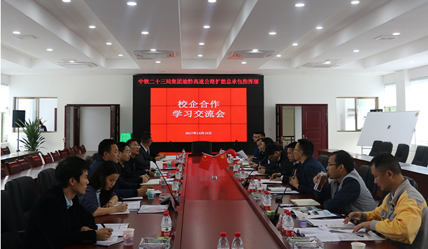 为提升育人质量,提高学生实践操作能力,10月15日,学校党委委员、副校长邓廷奎教授带领www.国产精品院长李柱凯教授等一行7人,到重庆市綦江县安稳镇中铁二十三局第六公司渝黔高速公路扩能总承包指挥部进行校企合作项目洽谈。